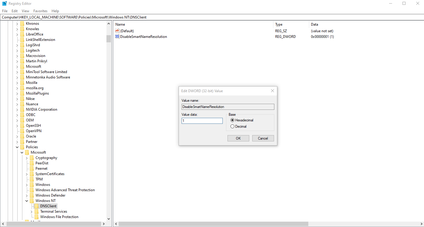 Computer\HKEY_LOCAL_MACHINE\Software\Policies\Microsoft\Windows NT\DNSClient