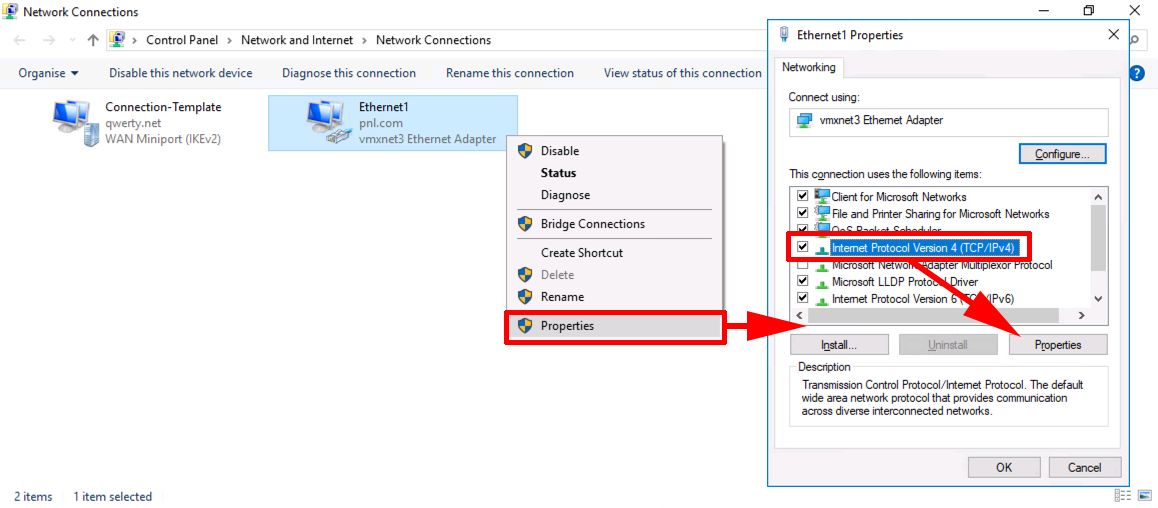 Start > ncpa.cpl {enter} > Right click your NIC > Properties > Internet Protocol Version 4 > Properties.